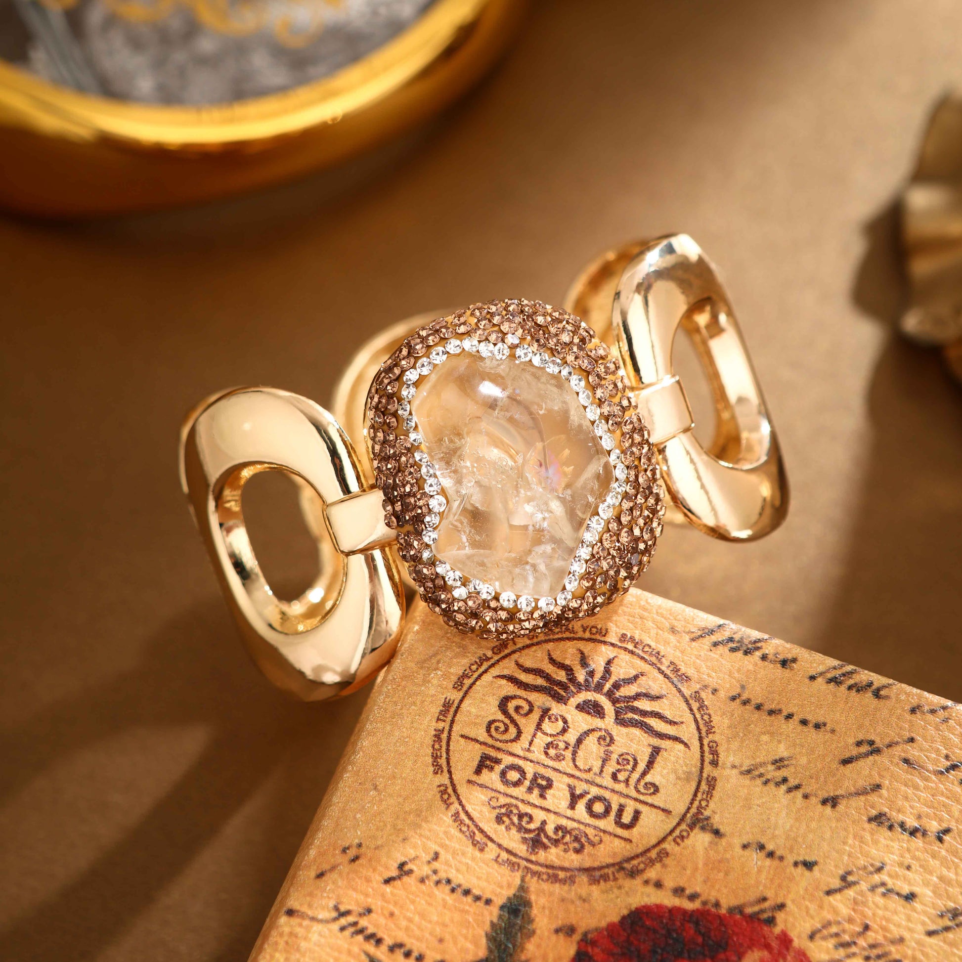 Wrap your wrist in sunlit radiance with this stunning bracelet, where warm, honey-hued citrine takes center stage—paired with sparkling glass crystals and polished alloy for a perfect blend of glow and grace. The citrine’s golden warmth evokes endless summer days, while the glass crystals catch the light with every movement, and the sleek alloy binding ties the design into a cohesive, eye-catching piece. Lightweight yet full of charm, it’s the ideal accessory to add a touch of luminous elegance to casual outfits or elevate evening looks—wearable sunshine that brightens any moment.