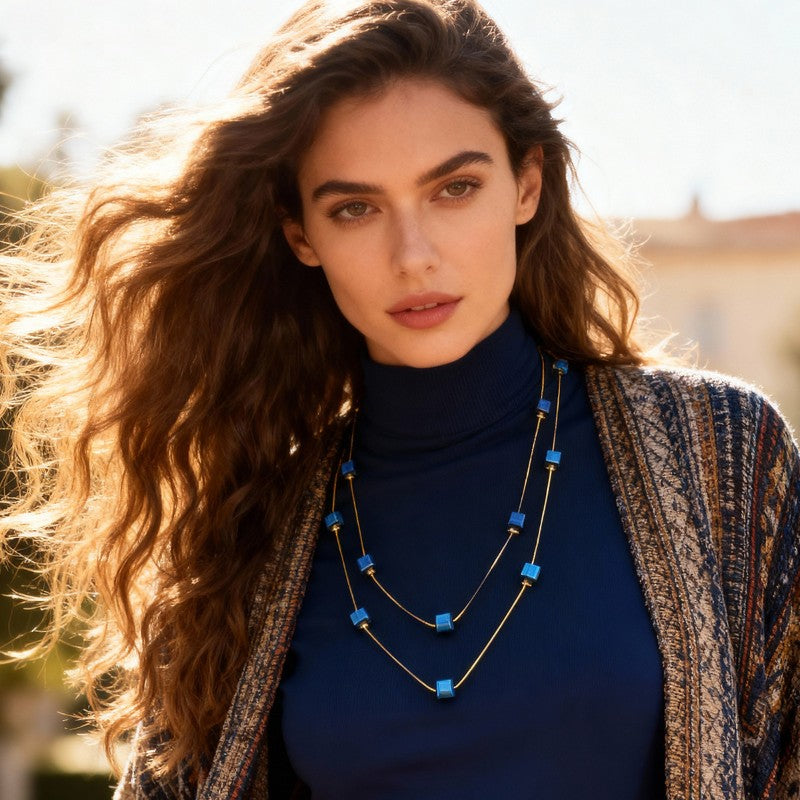 A luminous blend of sparkle and durability—this necklace pairs shimmering glass with sleek alloy, crafting a versatile piece that balances modern elegance with everyday practicality. The glass takes center stage: clear crystal-like beads, frosted teardrops, or colored glass in rich jewel tones (emerald, sapphire, ruby) that catch light brilliantly, adding a lively glow. The alloy forms the sturdy foundation—polished silver, gold, or rose gold-plated chains, plus secure settings or link details that hold the glass securely while resisting tarnish. Whether designed as a minimalist single strand with scattered glass beads, a layered chain with a glass pendant, or a geometric link necklace alternating glass and alloy, the design feels both refined and approachable. Lightweight and comfortable for all-day wear, it elevates casual linen, office attire, or evening dresses effortlessly—wear alone for subtle sparkle or layer with dainty chains for a trendy look.