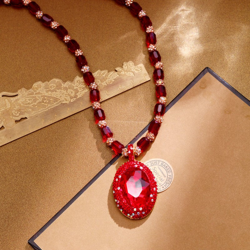 Crafted with artisanal finesse, the necklace shines in diverse designs. Many styles feature copper wire skillfully wrapped around red crystal pendants, with glass beads strung along the copper chain to create rhythmic layers of color and shine. Some designs go further, using hammered copper links interspersed with clustered red crystals and tiny glass droplets, blending rustic texture with glamorous sparkle. Minimalist options let the materials speak for themselves: polished copper chains paired with a single statement red crystal pendant, accented by a small glass bead for subtle contrast. The copper components—from secure lobster clasps to smooth, comfortable chains—are finished with care, with wrapped edges filed smooth to ensure all-day comfort against the skin.