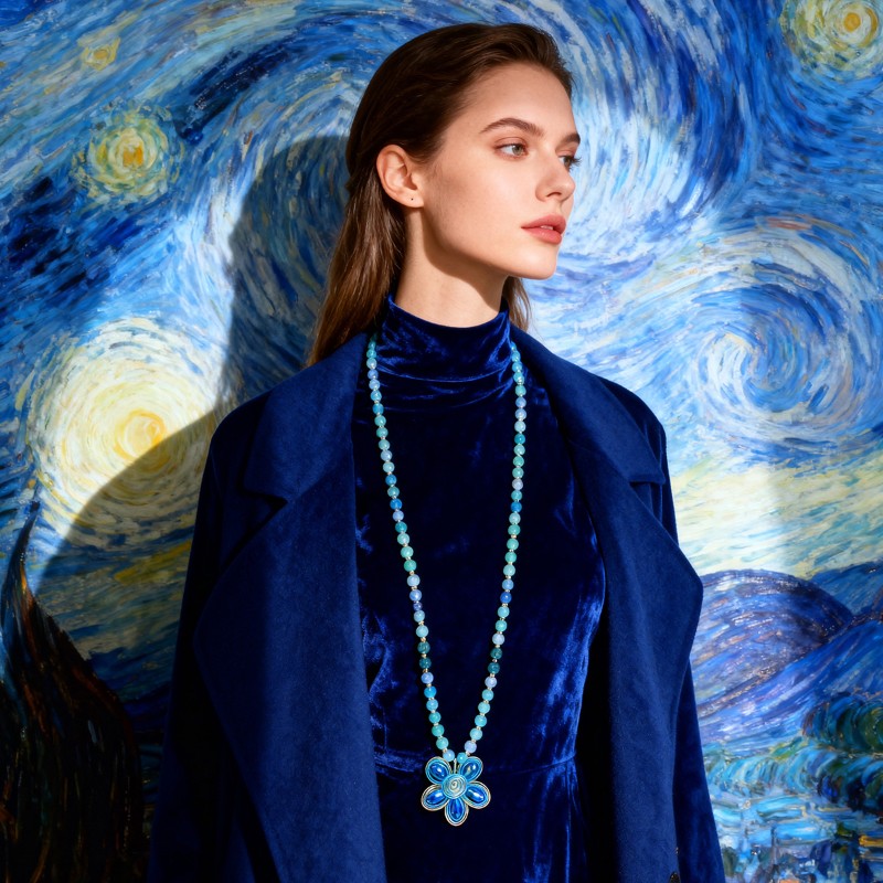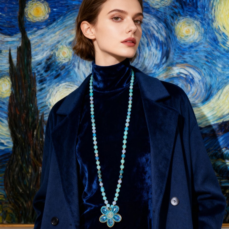 l Necklace weight: Approx. 90g | Extended chain length: Approx. 102cm | Extender chain: Approx. 8cm | Flower diameter: Approx. 5.3cm | Pearl diameter: Approx. 8mm