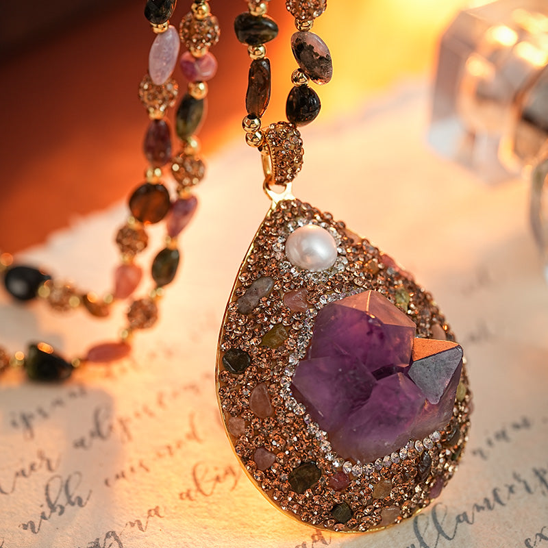 S2680N1 Pure Amethyst Pearl Tourmaline Sweater Chain Long Necklace fine handmade gifts