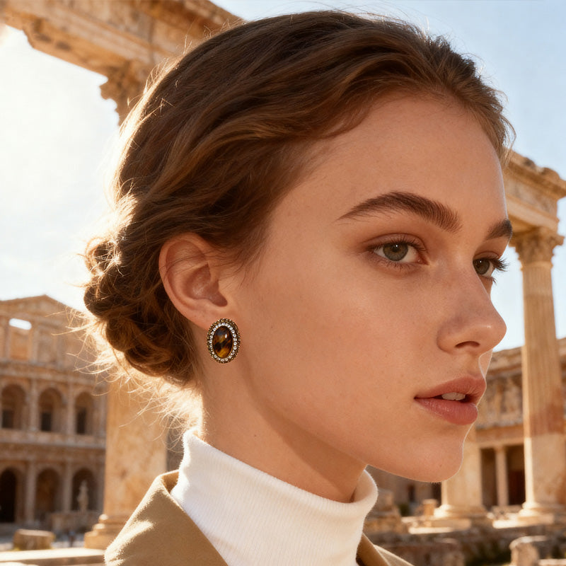 The tiger's eye rhinestone copper earrings are a captivating combination. The tiger's eye stones have a unique chatoyancy, with bands of golden and brown that shimmer and change with the light. This gives the earrings an earthy and luxurious look.